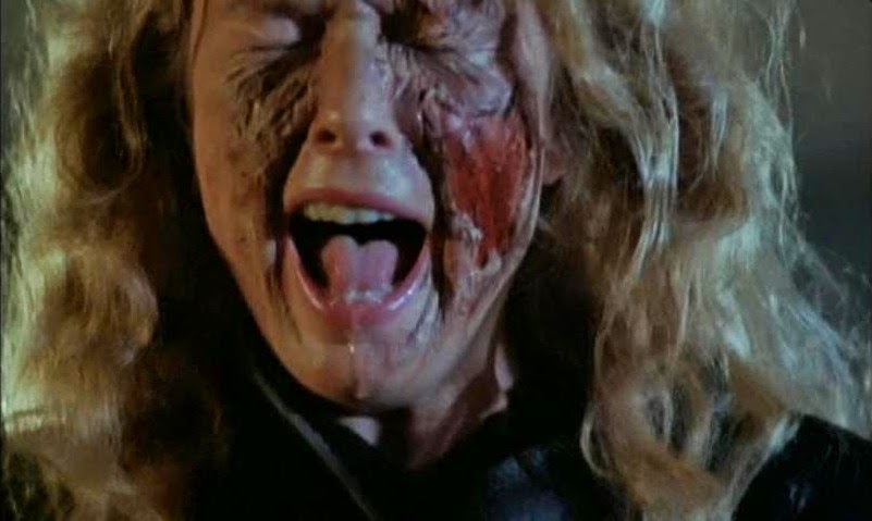 (Um parêntese: A cena do ácido, de tão mal-feita e mal-filmada, lembra momento parecido em "Inferno Carnal", de José Mojica Marins: após receber o ácido no rosto, a atriz usa as mãos para arrancar pedaços de látex da cara, como se fosse a pele queimada se soltando do rosto, mas nada acontece com os seus dedos, que em tese também estão em contato direto com o mesmo ácido!)