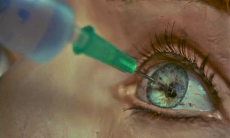O resultado é exageradamente gráfico. Lá pelas tantas, uma vítima é morta com uma seringa enfiada no olho. Isso já foi mostrado antes em outros filmes (de memória, lembro de "Halloween 2" e "Os Mortos-vivos", ambos de 1981), mas não com tanto detalhismo: Franco filma um super-close da agulha entrando lentamente num olho falso, "vazando" o globo ocular, e mantém a câmera nessa imagem incômoda durante longos segundos enquanto o sangue sobe pela agulha para a seringa!