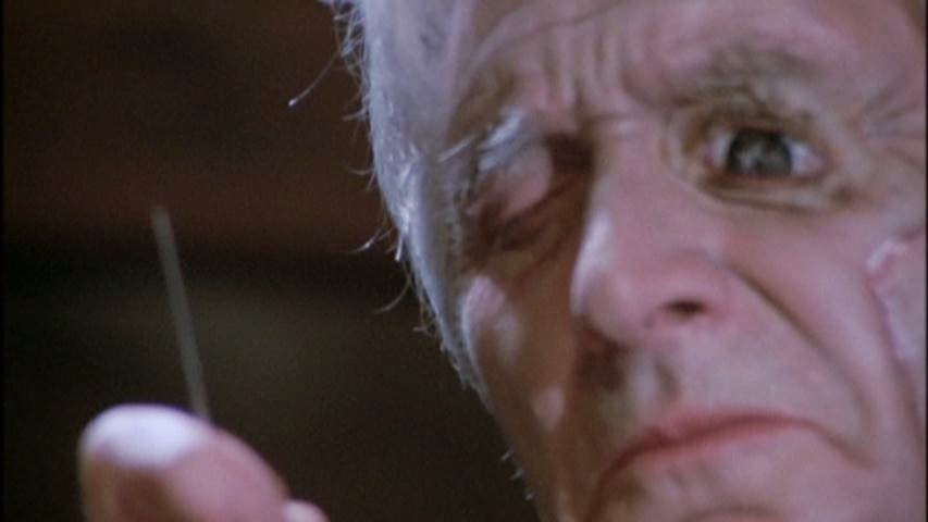 Aí foi só redublar os diálogos para enganar qualquer um que não tenha conhecimento da versão antiga - a faca ensanguentada que Usher segurava nas cenas originais da versão espanhola até vaza num dos takes, mas é praticamente imperceptível. Comparar esses momentos de EL HUNDIMIENTO DE LA CASA USHER e REVENGE IN THE HOUSE OF USHER certamente vale por um mês de aula de edição em faculdade de cinema!