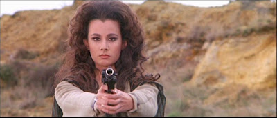 Ela é interpretada pela bela Anna Kanakis, Miss Itália de 1977 que depois acabou se perdendo nessas presepadas. A moça protagoniza até uma cena de sexo com o galã italiano à meia-luz, dentro de uma esquisita tenda de plástico!